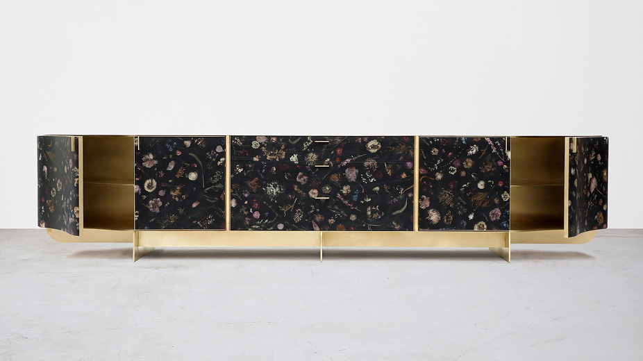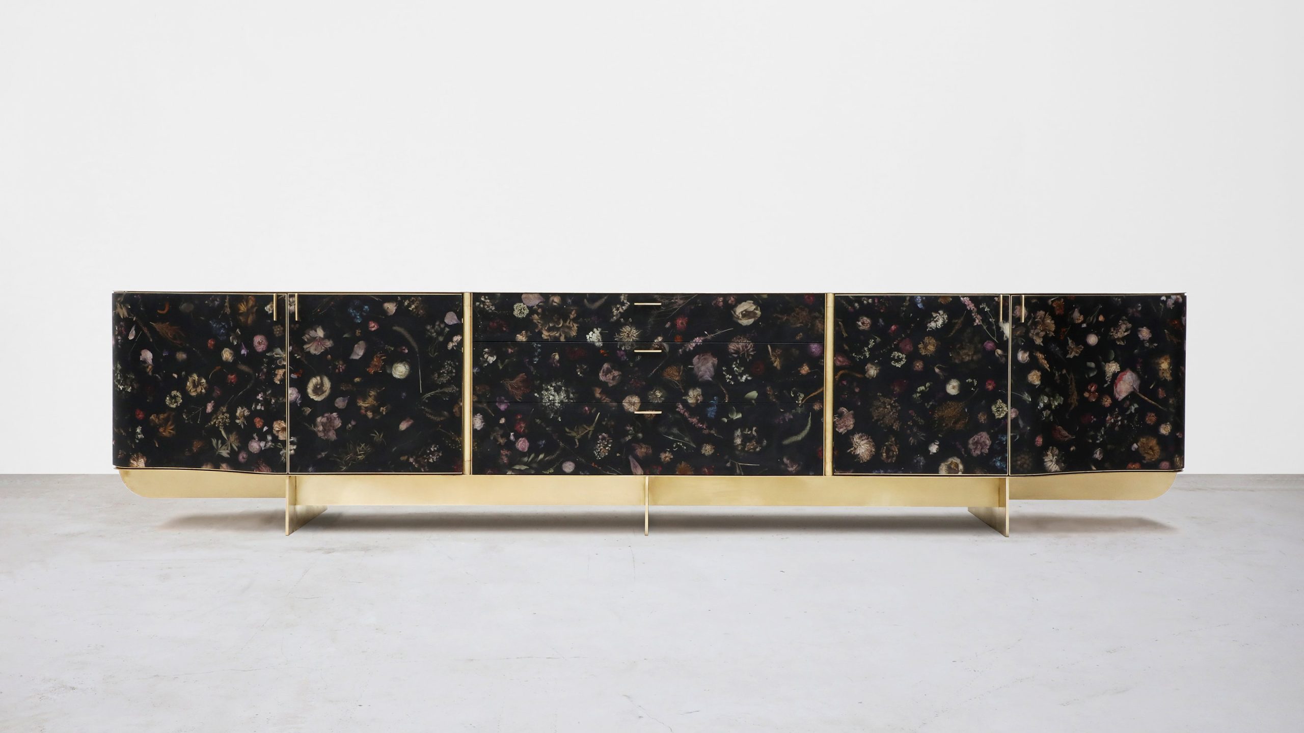 Each Flora Credenza is exclusively handmade to order, with material choices and flower compositions carefully discussed to match the spirit of the project.