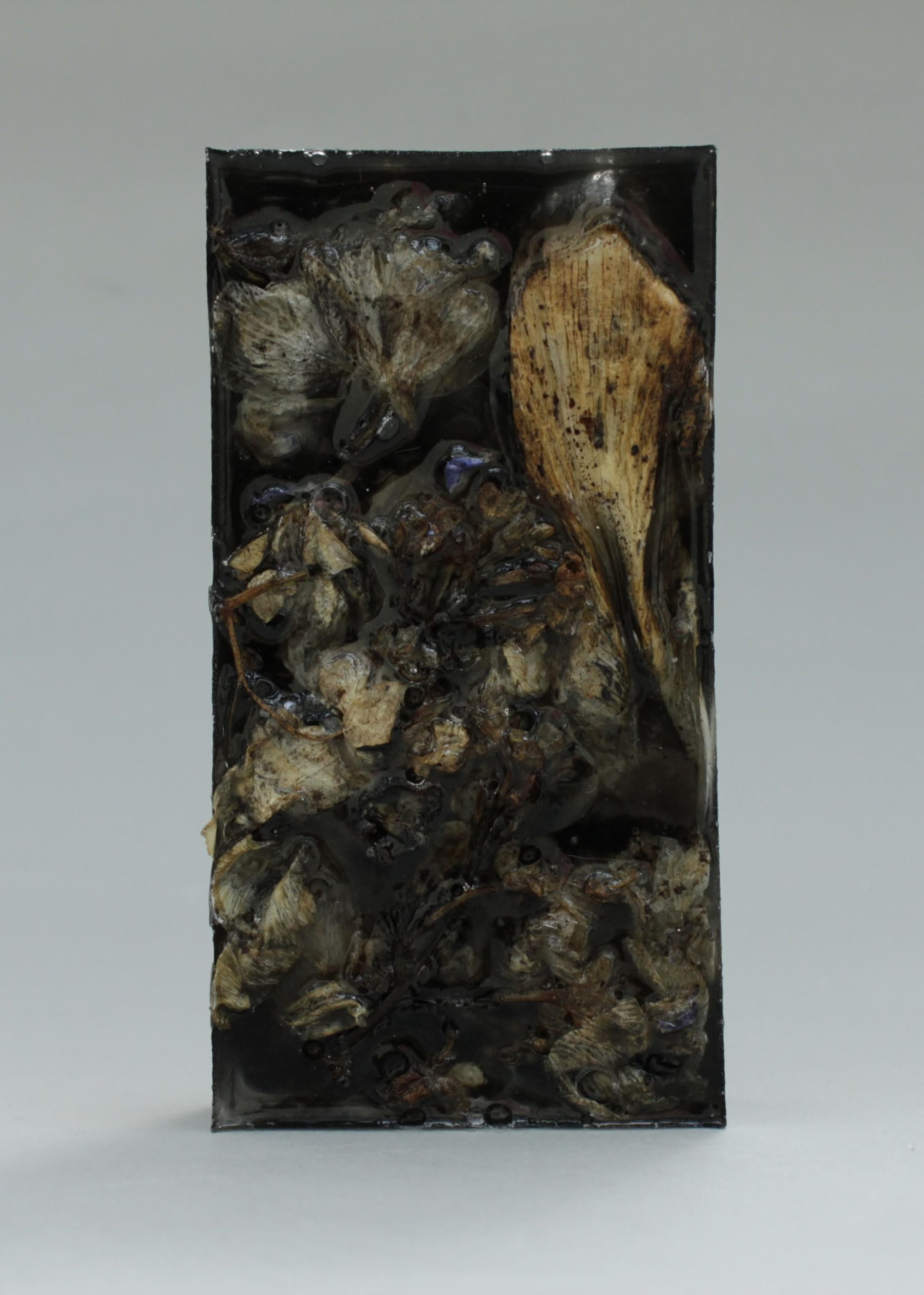 Before coming to London, I experimented with various types of resins and composites at the Design Academy Eindhoven. From the very beginning, I was interested in exploring the tension between preservation and the inherent ephemerality of the natural material.