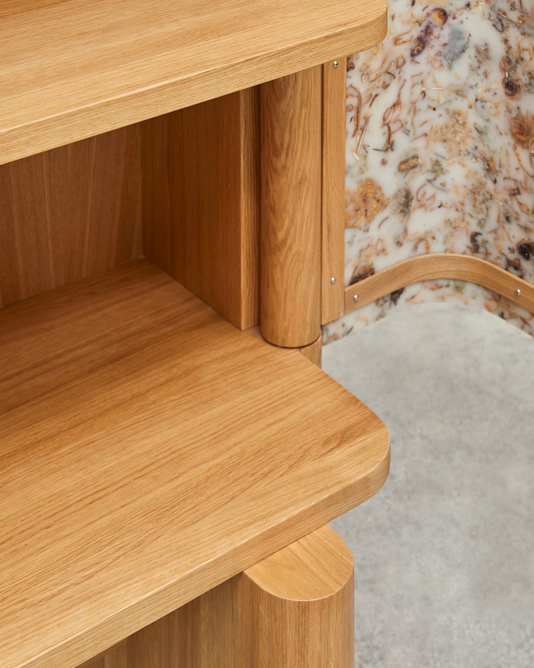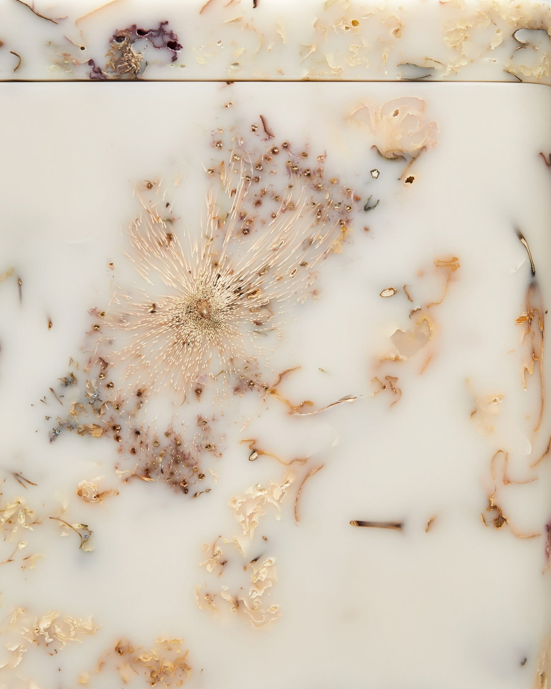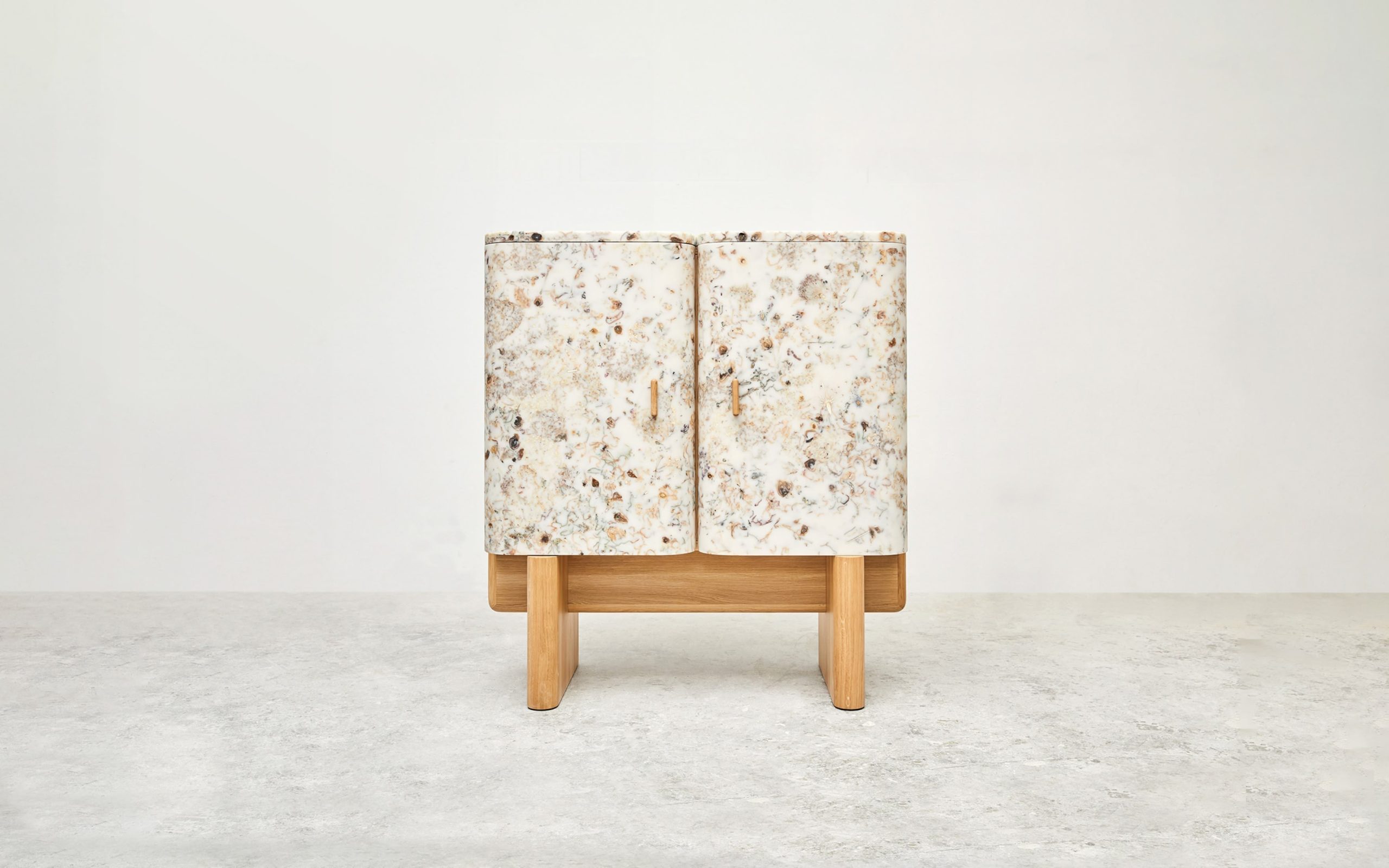 Inspired by Josef Frank’s ‘Flora Cabinet’, Flora Perma Cabinet 143 is part of the Flora Contemporaria limited edition series, composed of intersecting oak planes supporting a milky white resin body with curved corners. The Flora Perma material reveals the intricate and complex beauty of the cross-sections of flowers, the curve of petals, and the structure of leaves. Contrasted with white resin, they appear as veins or fossils creating an almost stone-like quality.